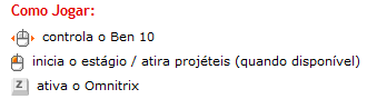 Destrua todos os blocos do estágio e os inimigos do Ben 10, utilizando as bolas e os poderes mágicos dele e dos monstros em que ele pode se transformar, e tomando cuidado para não deixar a bola passar por você, ou você perderá uma vida. 1.000 KB
